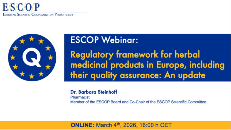 Webinar de ESCOP: Regulatory framework for herbal medicinal products in Europe, including their quality assurance: An update